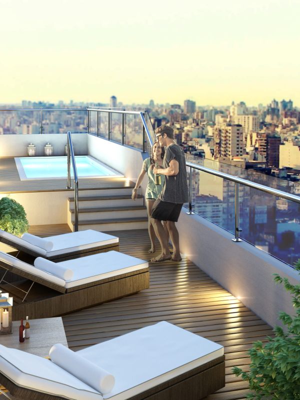 Amenities: pileta de natación, solarium, salón de usos múltiples con parrilla, laundry, guarda bicicletas y bauleras. Cochera opcional.